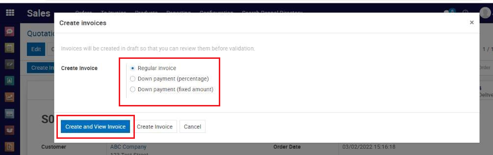 Create a invoice by clicking on “Create invoice” button and choose the payment type.